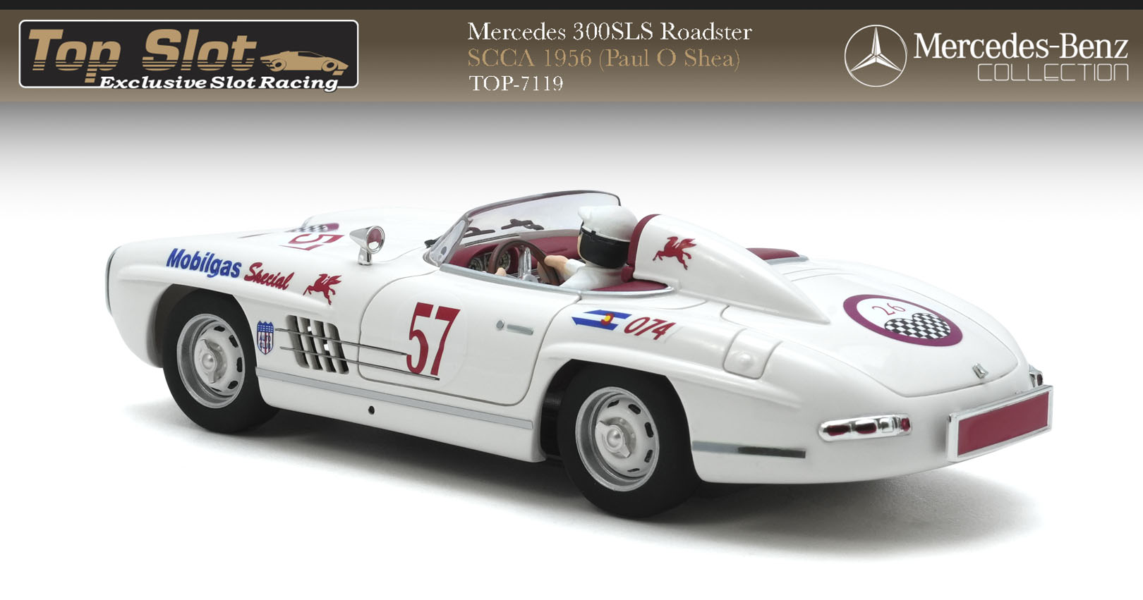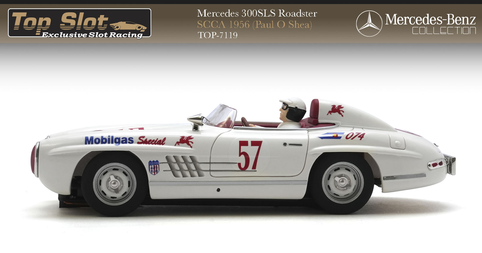 En 1956, el 300SLS Roadster compitió en el campeonato SCCA (Sports Car Club of America), uno de los circuitos más competitivos del mundo. El modelo pilotado por Paul O'Shea, conocido como el "Mobilgas Special", destacó por su velocidad y fiabilidad en pistas de EE.UU.